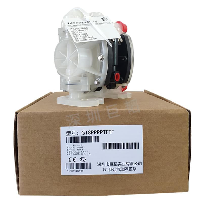 新泵接上氣源后就可空打,氣源供氣要緩慢由小到大,尤其半寸、1寸的小泵更要注意這一點,空打時間不能長,氣壓不能大,防止損害閥球。